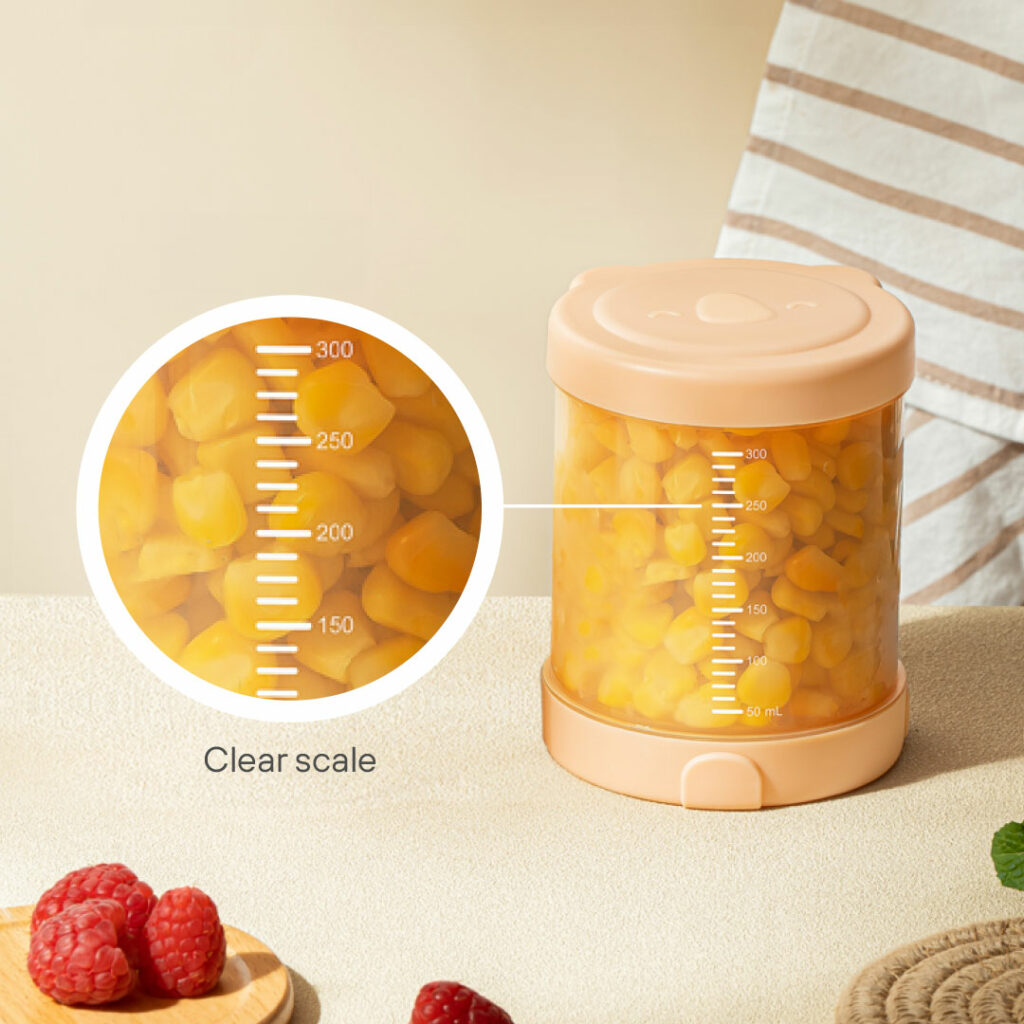 Our storage containers come with clear scale markings, helping you to easily control and measure the amount of complementary food.