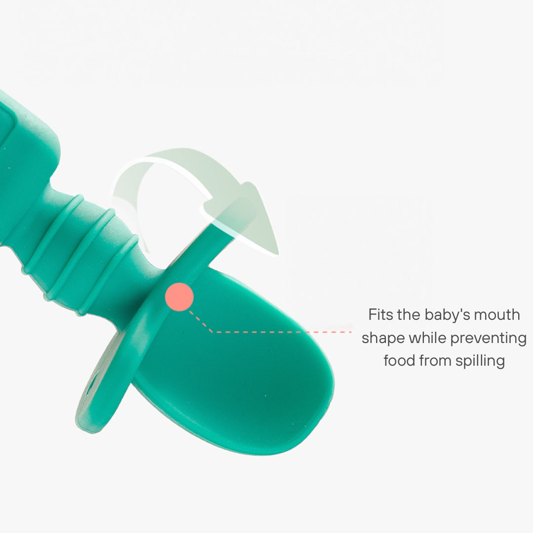 The spoon fits your baby’s mouth shape while preventing food from spilling.